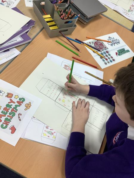 This term, Year 3 have been learning about shell structures in Design and Technology. As part of this unit, the children designed and made Christmas gift boxes using nets created from cardboard.