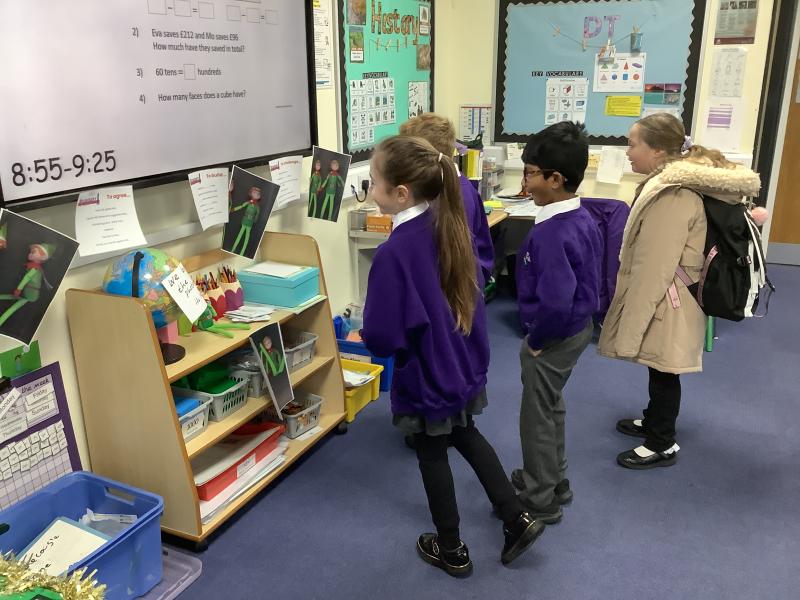 This week in Year 3, the twin elves Gerry and George have caused wave of mischief! On Monday, they introduced themselves via a balloon ride into the classroom! By Tuesday, the book corner was a jumble of toppled shelves and scattered stories after the elves turned it into their secret fort.On Wednesday, they started by throwing snowballs across the classroom, leaving giggles and icy splats everywhere. On Thursday, they brought even more chaos as they managed to break the screen during a wild game of hide-and-seek.Though their tricks were cheeky and messy, Gerry and George have filled the classroom with joy, laughter, and a sense of magical wonder that made every day unforgettable. Come back next week to see what else those cheeky elves have been upto!
