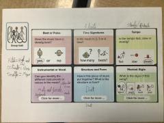This week we had a listening and appraising lesson. We remembered that to listen and appraise we need to have good active listening skills to be able to talk about the dimensions of the music. For our group task, we had to discuss what the beat was like, the time signature, the tempo, what instruments we could hear, the structure of the song, the genre, the pitch and the tonality. Afterwards, we had a go at singing the song for the first time.