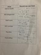 This week, we started the lesson using our oracy skills looking at a statement which said “There will be areas around school which are silent” and a “which one doesn’t belong scenario”. Next, we discussed what noise pollution is and how we hear sound because materials vibrate. Towards the end of the lesson, we went on a sound walk around school to see if there are any areas which are silent and noted down all the sounds we heard.