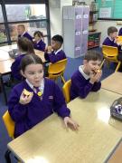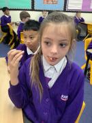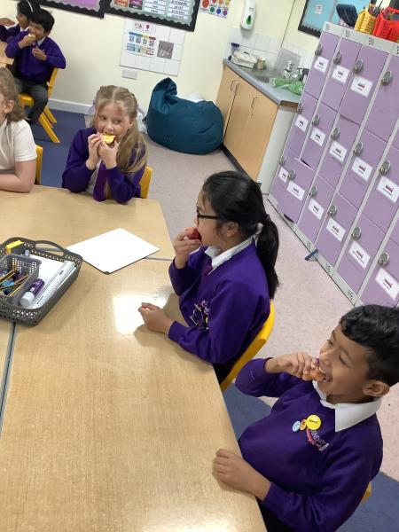 This week, we looked at the different names and functions our teeth have. We tried eating an apple using just our incisors, but it was super tricky because these teeth are for biting not chewing.