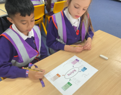 In this lesson the children were learning about changes in state. We started by flshing-back to prior learning about the states of matter and the children knew that all matter can exist as a solid, liquid or gas. We then conducted some simple experiments to show the processes of melting, freezing, evaporating and condensing. We linked these processes to things we see in everyday life, such as mirrors 'steaming up' in a warm bathroom.