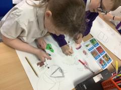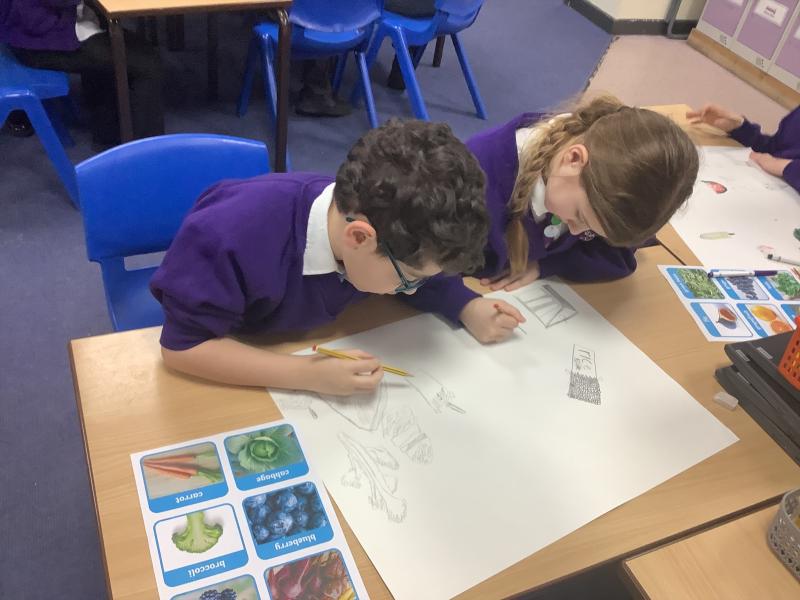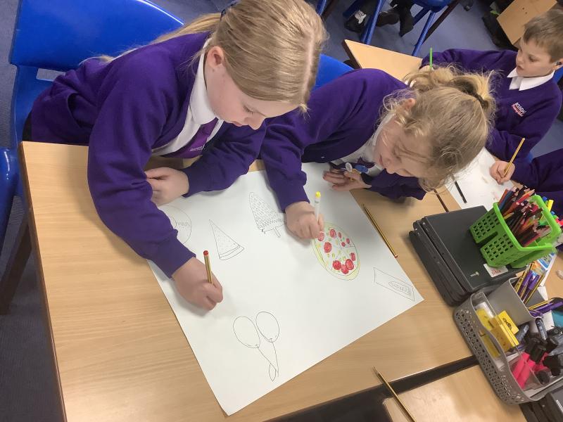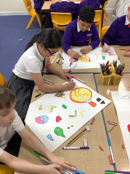 As part of our pathway this half term, we had to draw a buffet of food. We were given large sheets of paper (which we pretended were tables or blankets) and we drew what we'd like at a feast!