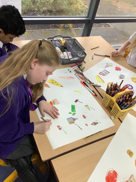 This week in Art, the children have enjoyed diving into a wonderfully playful project inspired by artists Claes Oldenburg, Lucia Hierro and Nicole Dyer. We began by looking closely at sculptures of food made at surprising scales, using our sketchbooks to make “visual notes” and quick drawings. The children explored how these artworks made them feel, while noticing important elements such as shape, colour, texture and composition.