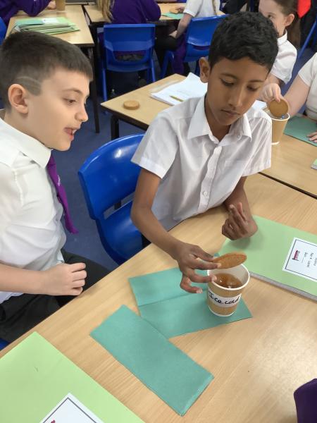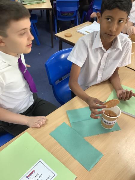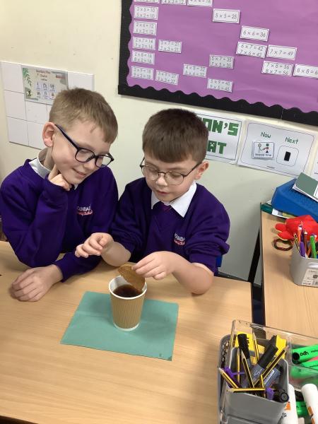 We have absolutely loved Science Day today! We were given our investigation question, “Which temperature of tea is best for dunking biscuits?” then we had to plan the investigation and carry it out. We managed to sneak in a biscuit too! We found that warm tea (around 60–70°C) is ideal because it softened the biscuit just enough, so the biscuit absorbs tea quickly and gets that perfect “gooey but not collapsed” texture. Warm tea didn’t soften the biscuit quick enough and the cold/ice cold teas hardly softened the biscuit at all.