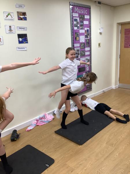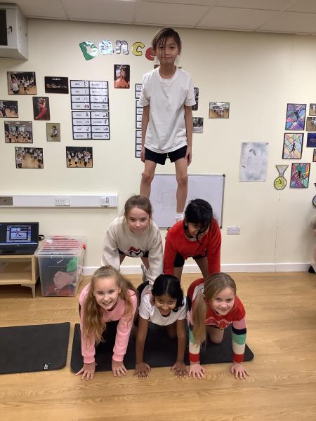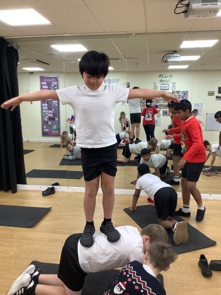 This half-term we have been developing our gymnastic skills. This week, we have worked in pairs and larger groups to demonstrate our core strength, balance and team work abilities. As you can see from the photos, some of our pupils challenged themselves and, with the support of teachers and our Sports Coach, worked in larger groups to create a variety of shapes.