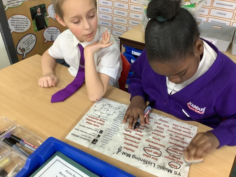 Today in music, we revisited our listening skills using the Listening Mats. We recapped how toidentify musical elements and used them to appraise the song “Free.” The class focused ondescribing what they could hear, including instruments, dynamics, tempo, and mood.