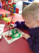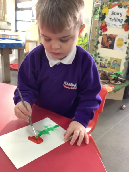 Nursery celebrated Remembrance Day and learnt all about the Soldiers, past and present, who looked after us. We talked about why we wear poppies and the children all painted their own poppy and also created a nursery poppy field. We joined the rest of the school for a Remembrance Day service after we planted poppies in our Boundary Poppy Field.