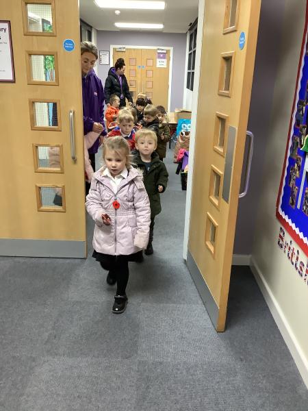 Later, we joined the whole school for our Remembrance Service. We listened carefully as the Year 6 readers told us all about the meaning of Remembrance Day and why the poppy is such an important symbol.
