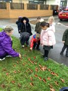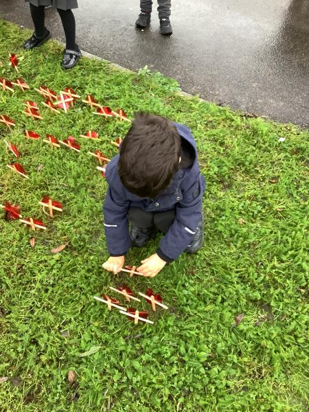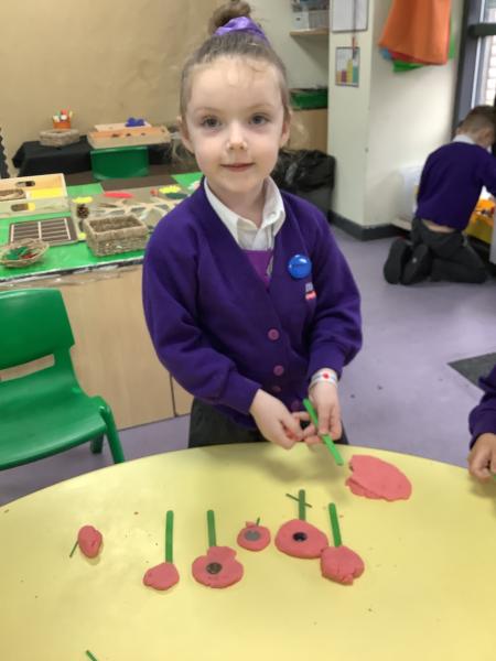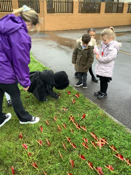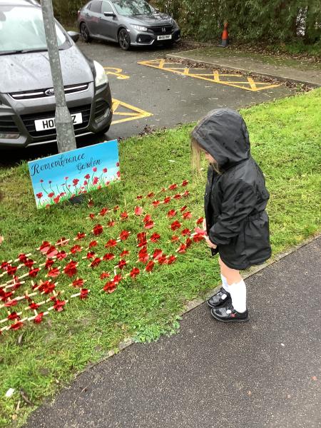 On Tuesday 11th November, each child in Reception made and planted their poppy in the school Remembrance Garden. On each poppy they had the name of a soldier who had died in the First World War.