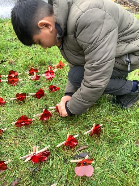 Today we planned our poppies in our remembrance garden to honour all the soldiers that have died in wars over the years. We will remember them.