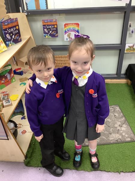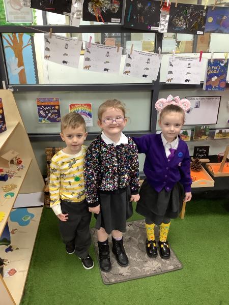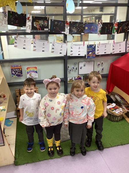 Today, the children celebrated Children in Need. They came to school dressed in something spotty or stripy and donated money to the charity.