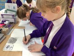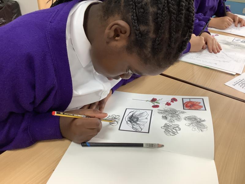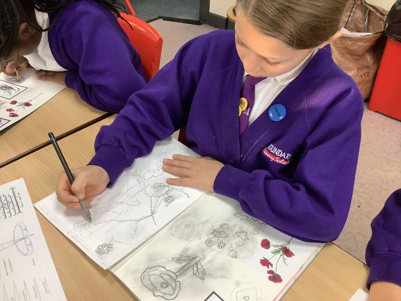 Children in Year 5 have been looking at Remembrance and have learnt more about why the Poppy is a symbol of remembrance. They have then sketched poppies in a variety of styles and using a range of different techniques. Their final piece will be sketched onto battle field maps, flight plans or plane diagrams from World War 1 and 2. The children have also been busy making poppies that have the name of a soldier that they will keep in their thoughts when they plant them during our whole school act of remembrance on Tuesday 11th November.