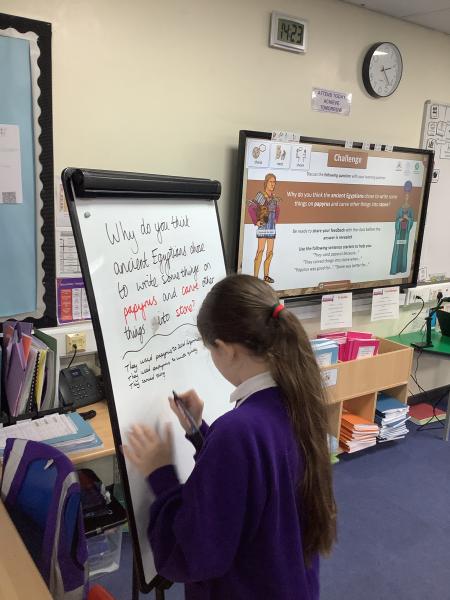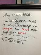This week, we looked at how we know about Ancient Egyptians and what evidence they left behind. Ancient Egyptians wrote in hieroglyphics and historians decoding this version of the writing to find things out about them. We found out that not everyone could write. People who could were called scribes and they had to go to school to learn how to do it.