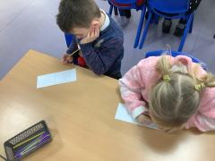 After reading the story "There's an Alien in your Book" the childlren followed instructions to create their own Aliens. They had to select the right amount of buttons, beads, eyes and pipe cleaners and then chose how to arrange then to create their alien.