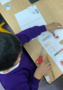 In maths we learnt about lines of symmetry, focusing on vertical lines of symmetry. We began by looking at a variety of 2D shapes and discussing what symmetry means and that a shape is symmetrical if it can be folded into two matching halves. We then carried out a practical activity where they cut out different shapes such as squares, rectangles, circles, and triangles. They experimented with folding the shapes to see if they could find a vertical line of symmetry. After folding, the children used pencils and rulers to draw the vertical lines of symmetry clearly on each shape.