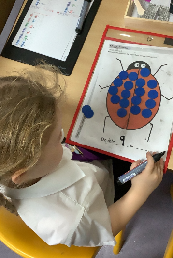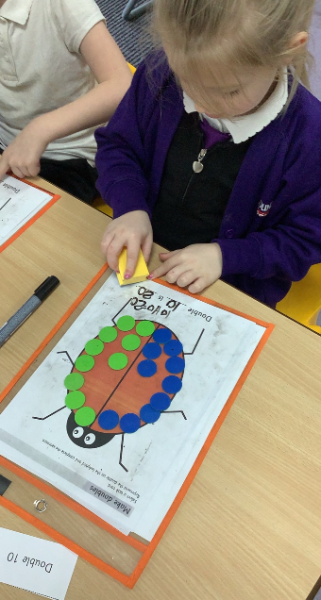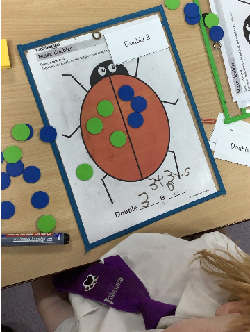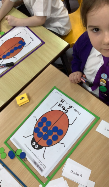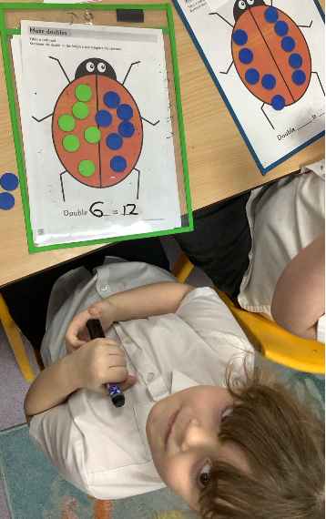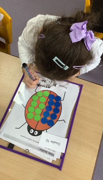 Today, we used concrete resources to represent a range of doubles. We learnt a double is the same repeated and used ladybird templates to represent this before completing a sorting activity to recognise whether something is a double or not.