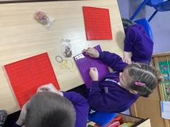 In Year Two, we have been adding practically across a ten. The children looked at exchanging ten ones for one ten when adding across a ten. The children looked at the concrete method first which will then support them with the pictorial and abstract steps.