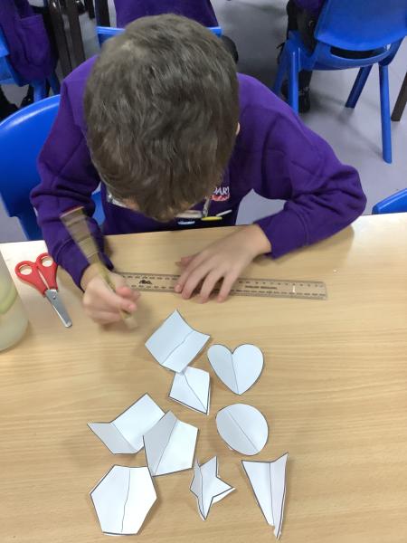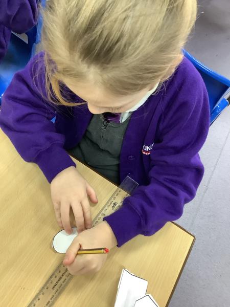 In maths we learnt about lines of symmetry, focusing on vertical lines of symmetry. We began by looking at a variety of 2D shapes and discussing what symmetry means and that a shape is symmetrical if it can be folded into two matching halves. We then carried out a practical activity where they cut out different shapes such as squares, rectangles, circles, and triangles. They experimented with folding the shapes to see if they could find a vertical line of symmetry. After folding, the children used pencils and rulers to draw the vertical lines of symmetry clearly on each shape.