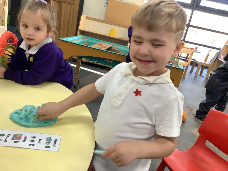 Nursery got a little bit spooky this week as we celebrated Halloween. The children have been busy making potions, creating a witch using different shapes, making pumpkins out of playdough and practising their cutting skills by giving a witch a hair cut! They have also been exploring light and shadow by using halloween torches in the black out tent and helped some spiders to find all 8 of their missing legs! Its been a very spooky week!