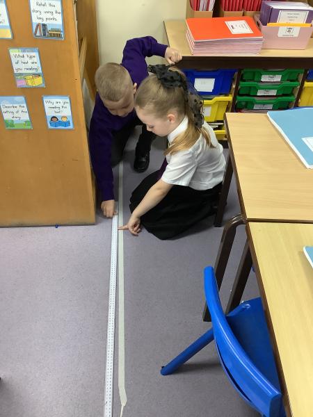 In this lesson we looked at measuring in metres. We used a metre stick to measure a range of different lines to find out the length. We thought about how we use a metre ruler and thinking about starting at 0.