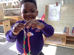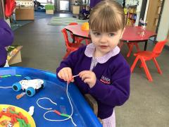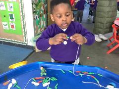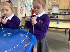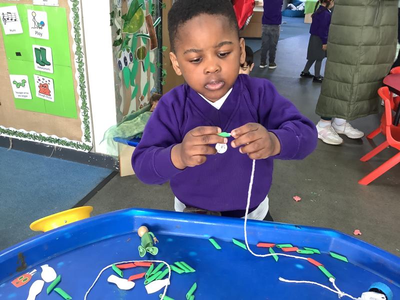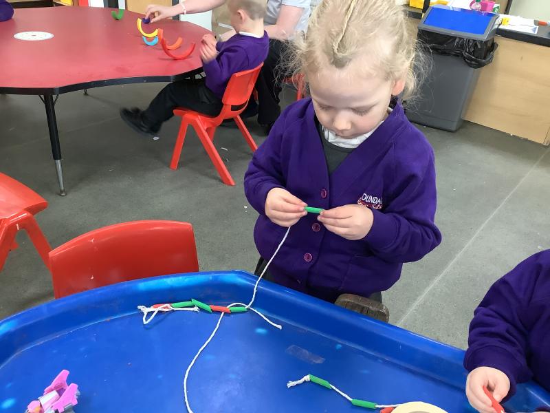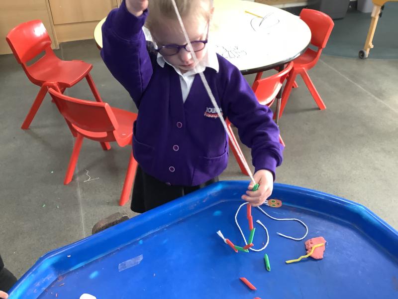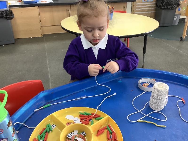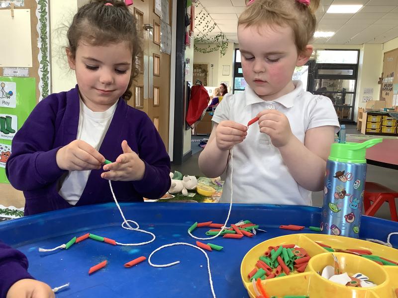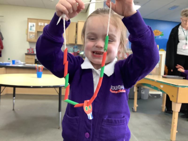 As part of our Hungry Caterpillar topic, Nursery children had lots of fun making their own caterpillar necklaces. They carefully threaded pieces of pasta onto string, which was a great way to practise their fine motor skills.