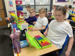 In Year Two, we looked at the skills of Listening and Appraising and Improvising. We listened to the song Boléro and thought about what we liked and disliked and linked it to the Elements of Music. We then got a range of percussion instruments and thought about what they sounded like, what the pitch was and if we liked and disliked them. We used our oracy skills and ABC to think about the different instruments. The children then had a go at playing the different instruments and improvising along to Boléro.