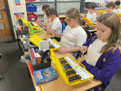 In this picture are six of our children who attend guitar lessons through school with a peripetetic teacher. The children work hard every week with Mr Stone to learn a wide range of songs and chords.