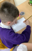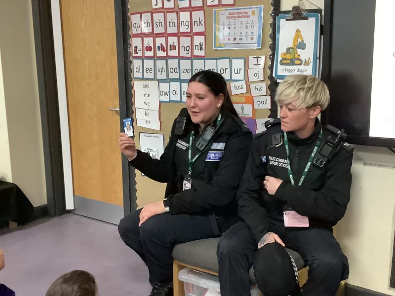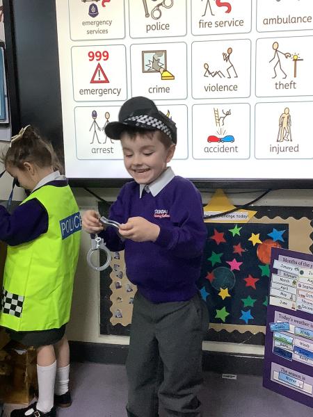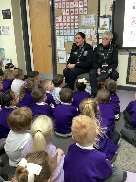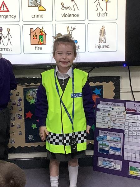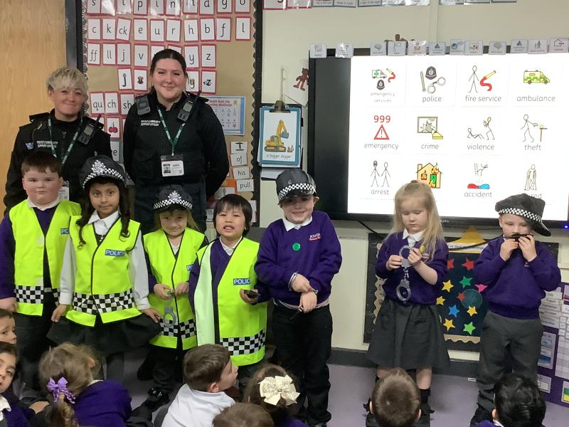 Over the psst few weeks the children have been learning about people who help use in the community. Today Grace and Holly the PCSOs who work on Grange Park came into Reception to talk to us about their role within the community. They talked to use about what they do at work and how they support the families and schools in the area. We found out why they wear a uniform and that they have a special ID badge. The children asked some super questions and enjoyed trying on the different costumes and props that they brought with them.