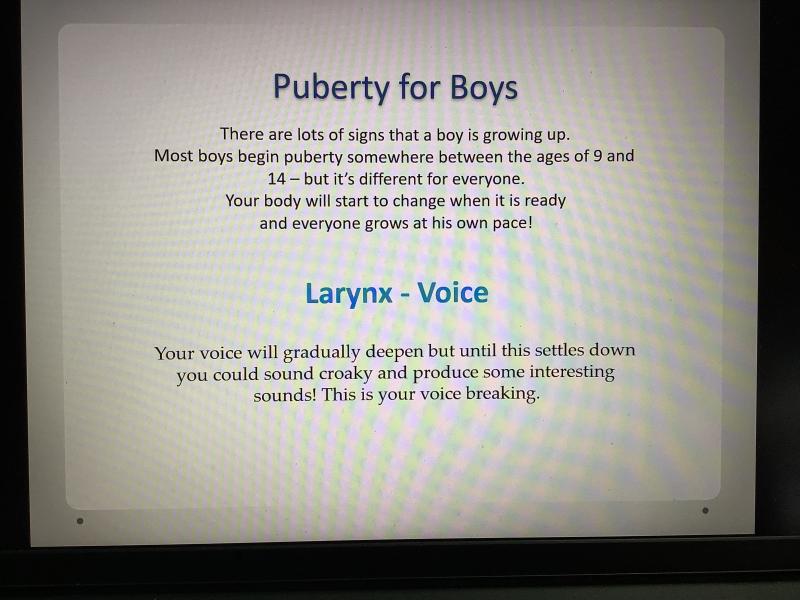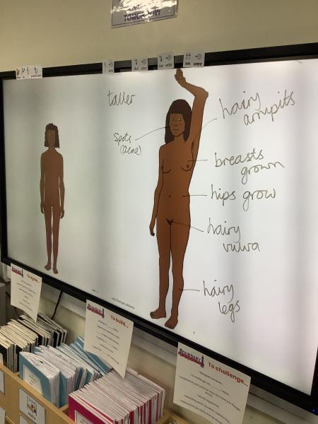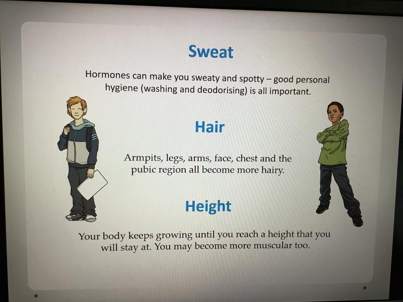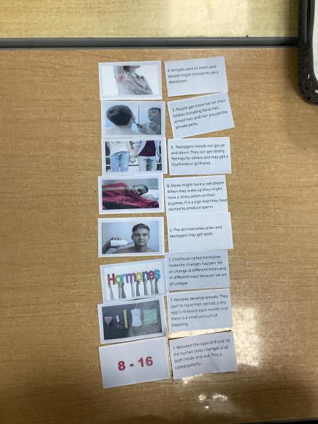 Our first lesson, looked at the human lifecycle and some basic facts about puberty. We discuss at what stage humans reproduce and how our bodies change during this time. We then focused on what puberty is during the second lesson. We were given facts about puberty and we had to sort them to match the correct picture. We also recapped how our bodies change during puberty and which changes are specific to males and which changes are specific to females. Separately, as a class of girls and a class of boys, we spoke about periods and the girls looked at sanitary products.