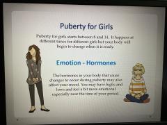 We learned that puberty is a natural stage of growing up that everyone goes through—just at different times. During puberty, the body begins to change to become physically mature. Some of the things we covered include: