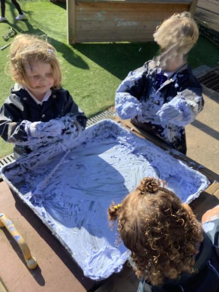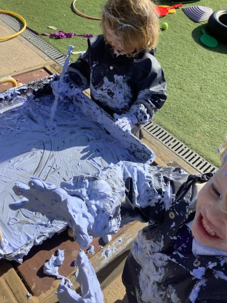 Things got a little bit messy this week as the chidlren explored shaving foam and paint! This was a great way for the chidlren to build their relationships together as they talked about the feel and smell of the shaving foam. They also talked about what they could see as the shaving foam and paint mixed together.