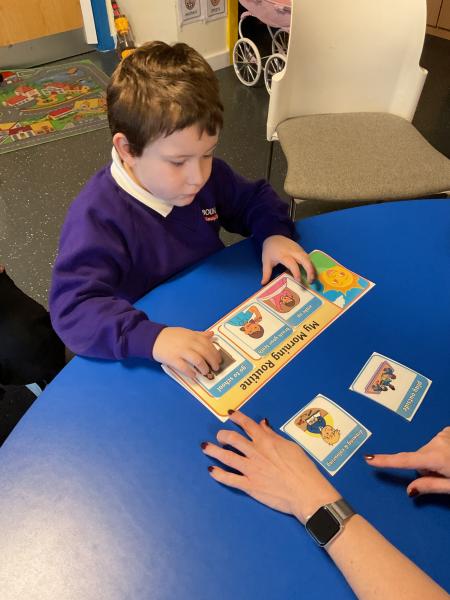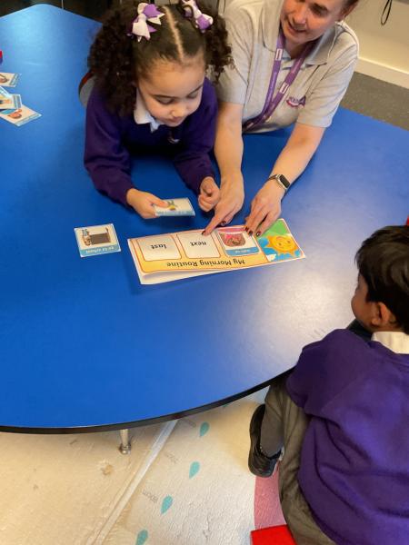 Acorns are exploring and developing their understanding of daily routines. This week we have been looking at our morning routines. We enjoy learning through songs and rhymes and visuals. We are beginning to show our understanding by independently show a morning routine of with n adult supporting us.