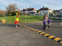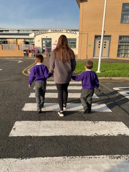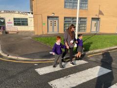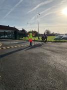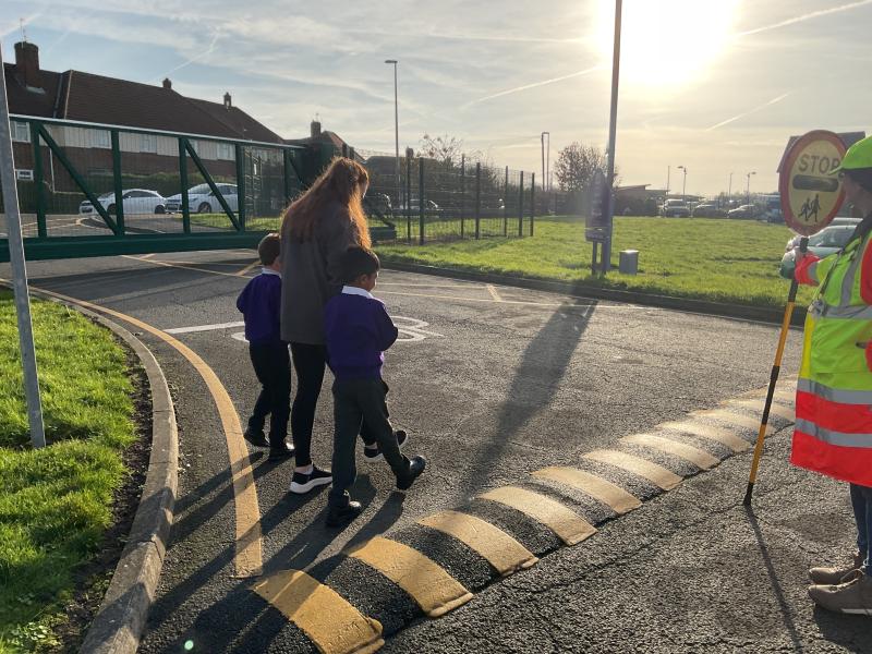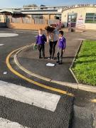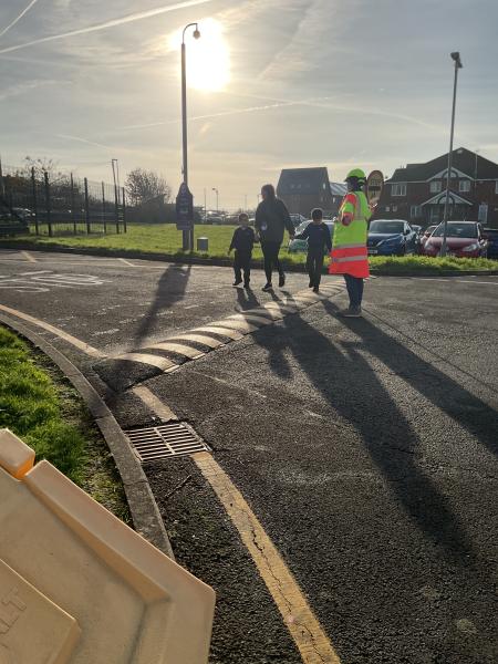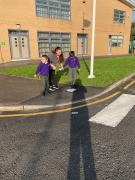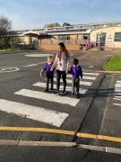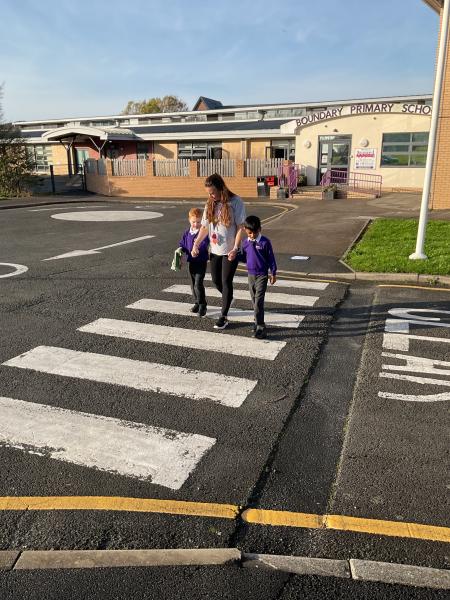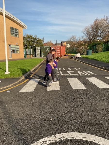 We went into the car park and found the zebra crossing, listened to an adult as we said "Stop, look and listen". We looked left and right for cars before crossing the zebra crossing safely. We then saw Zoe and when she was in the middle of the road, it was safe to cross.
