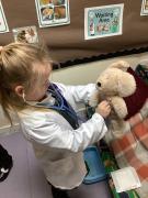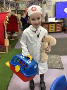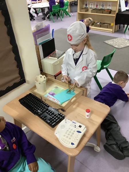 Reception have been learning about how Doctors and nurses help people and have been having a great time role playing in our Doctor's Surgery. They dressed up as Doctors and nurses, role played at being the surgery receptionist and patieints and spent many hours helping our baby doll get better from whatever illness or injury it had sustained. Children wrote out prescriptions and patient information too.