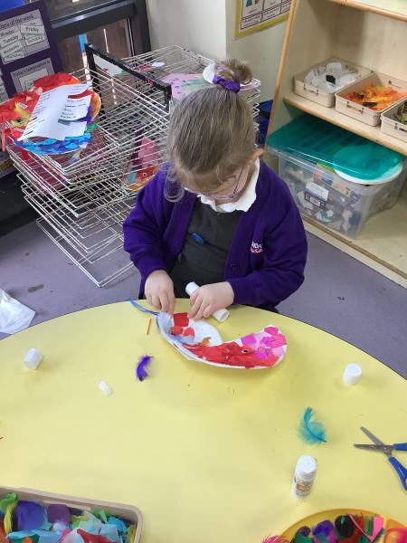 As part of our learning about different cultures and communities this week we have been finding out about how Chinese New Year is celebrated across the world. At the creative area we have been making our own dragon puppets using a range of different meduims and materials. We have been practising lur cutting aswell as fixing and joining using both tape nd glue. We can't wait to use our puppets during our chenese new year parade later in the week.
