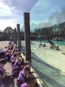 Everyone gathered to watch penguin feeding time, which was a big hit! Afterwards, the class headed over to enjoy the fun and impressive sea lion show.