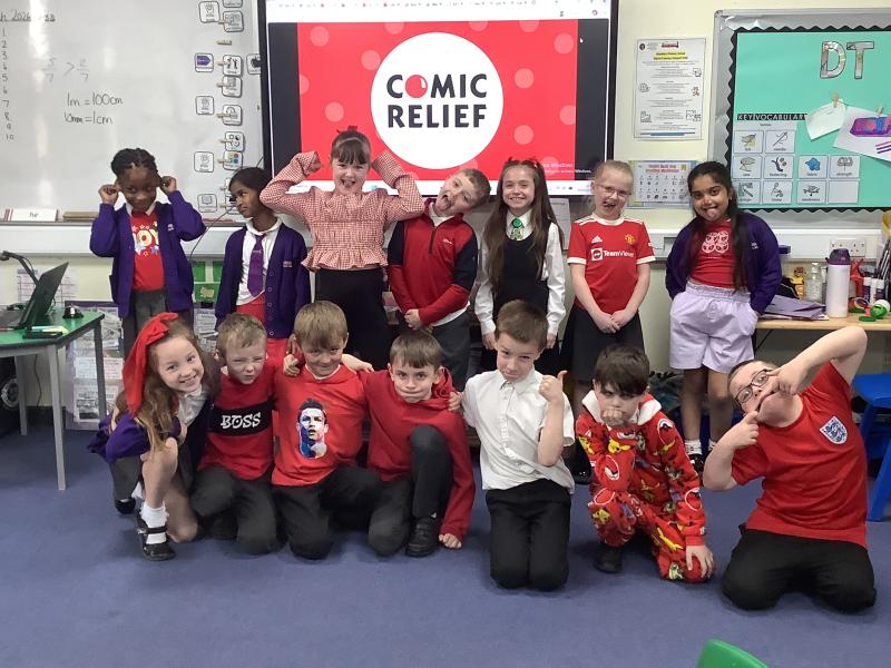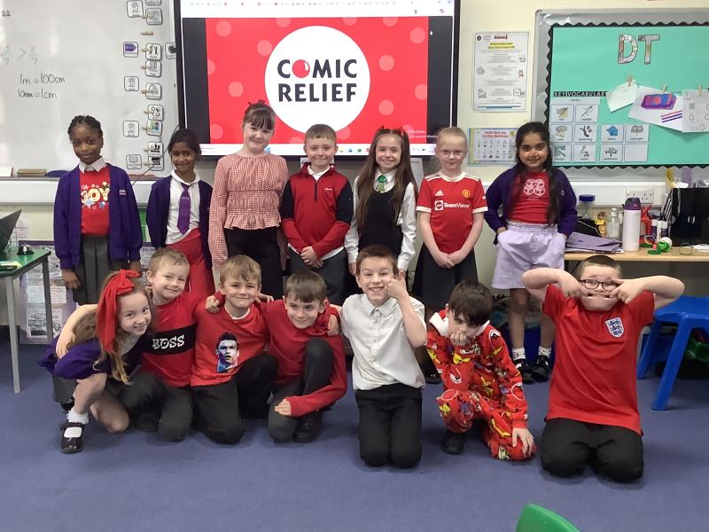 Today, Year 3 had a fantastic time celebrating Comic Relief! The classroom was brighter than ever, with children proudly wearing their favourite red items of clothing—from cosy jumpers and bright T‑shirts to fun accessories. It was wonderful to see everyone joining in and showing their support.
