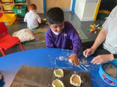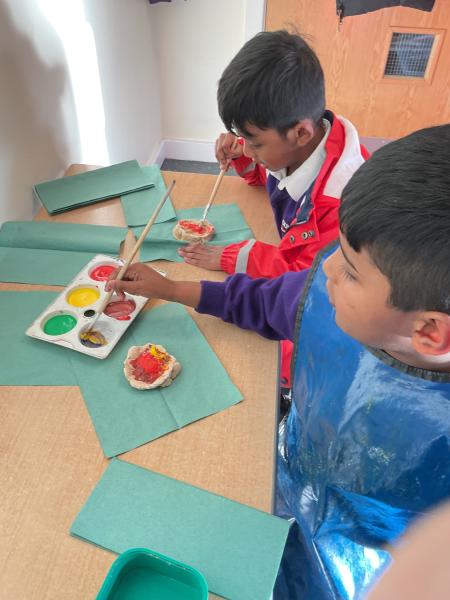 Reception have been learning about the Hindu festival of Diwali- 'The Festival of Light'. The children have been finding out how Hindu's prepare for the celebration by cleaning and decorating this houses. The learnt what a diva lamp is and that rangolli patterns are made to welcome guests to their homes. We found out that they have many special traditionsincluding visiting their temple, sharing a special meal with their families, wearing speacial clothes and even setting off fireworks. the children enjoyed making Diwali cards for their friends, paintng rangolli patterns and even making their very own diva lamp to take home.