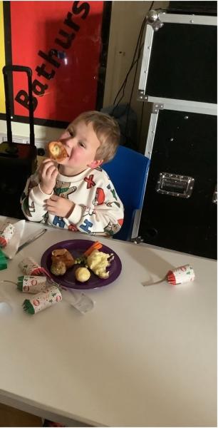At lunchtime, we enjoyed a yummy Christmas dinner and enjoyed the Christmas tunes!