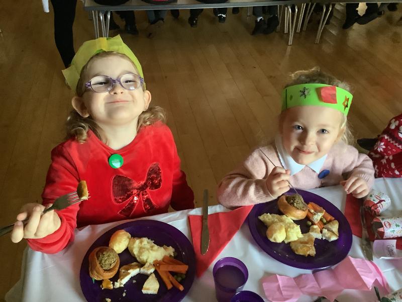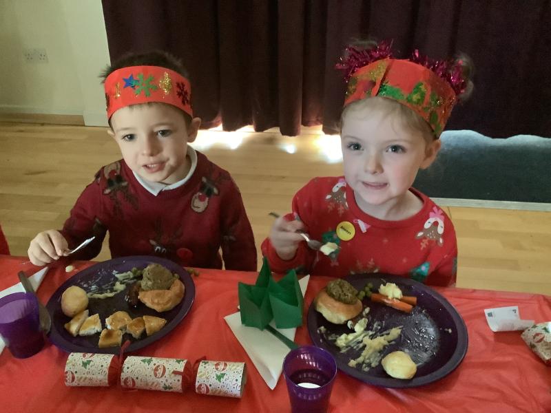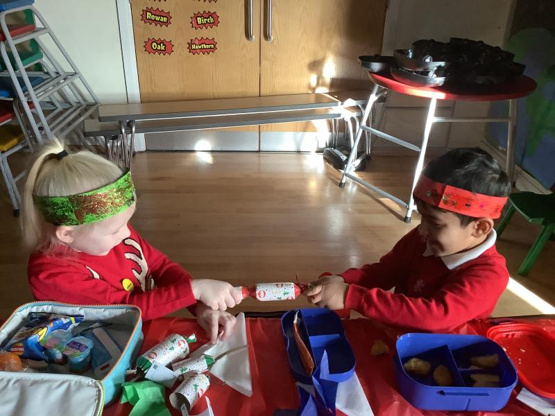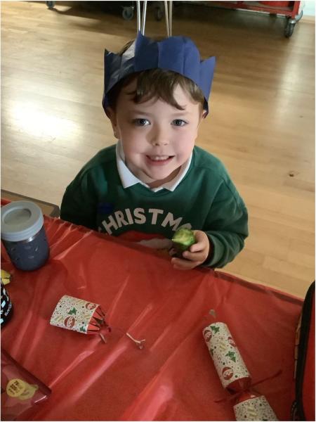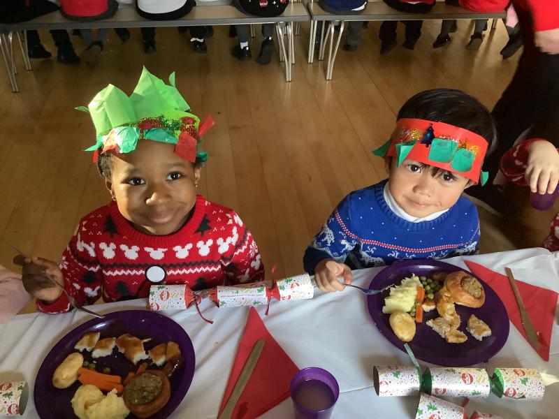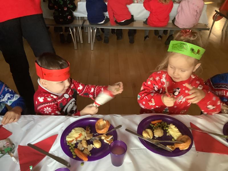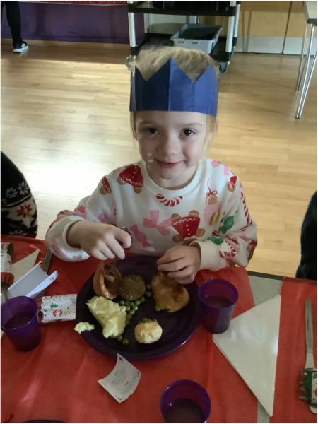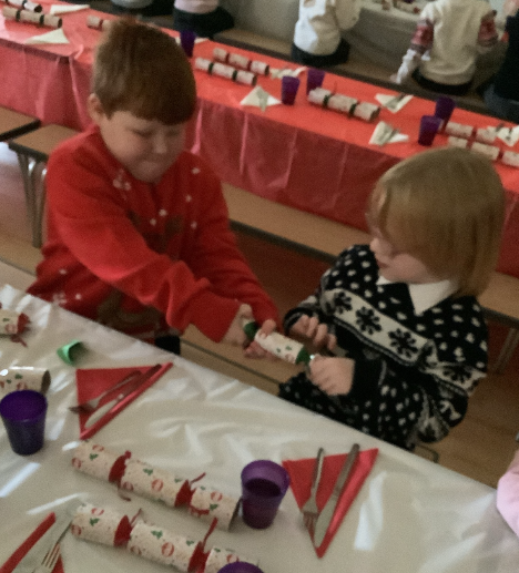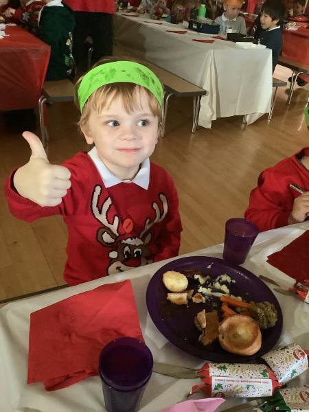 Today the children in Reception enjoyed having Christmas dinner with their friends. Thei chi;drem were invited to get into the Christmas spirit by wearing a Christmas jumper. Evertone looked fabulous! They enjoyed a lovely turkey dinner with all the trimmings whilst they sang along to Christmas songs and pulled crackers with their friends.