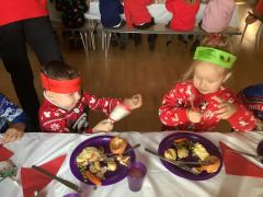 All the children have been enjoying dressing up in the home corner as Elves and reindeers. They sang songs, made "hot chocolate" and "Christmas dinner" and wrote Christmas lists to Santa. They also helped each other put their costumes on too.