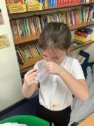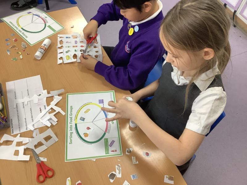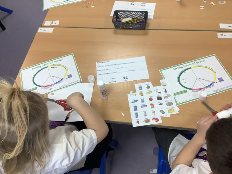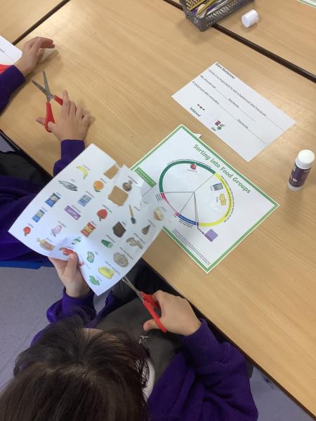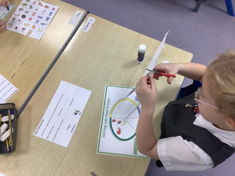In Science, we looked at sorting types of foods into the 5 different food groups. We sorted the foods into ‘Carbohydrates, dairy, fruits & vegetables, fats & oils and proteins’. We used our oracy skills to talk about what it is important to have a balanced diet and what we gain from each food group.