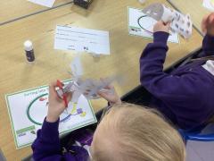 In Year Two, we have looked at investigating different materials. We looked at seeing what different qualities they have and through about which materials are absorbent. As a class we post-it note planning to see what we would keep the same, what we would change and how we would keep it a far test. Then the children conducted this experiment and saw how high the water had absorbed in the material, we then recorded this in a results table.