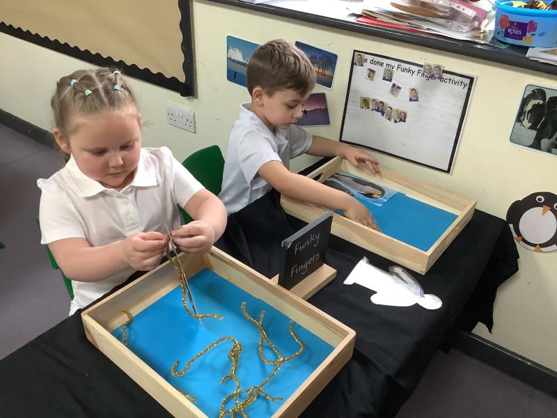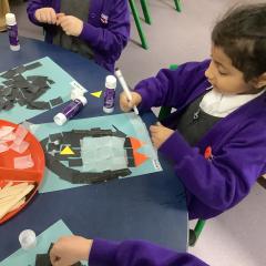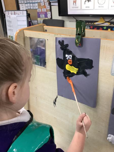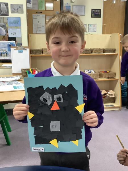 This week we have been learning about the continent Antarctica. We looked it on the world map, identifying the surrounding ocean and why it is white. We introduced a range of new vocabularly exploring its meaning and using stem sentences to put it into context. We discussed the different animals that like in cold climates and how they have adapted to survive. We focused on the Emperor penguin describing is features and what it looks like. To support our learning in provsion the children enjoyed painting and collaging penguins, playing with the smal world figures in the water tray and creating their own narratives in the tough tray. The children produced some lovely writing labelling the different parts of the penguins using their phonic knowledge.