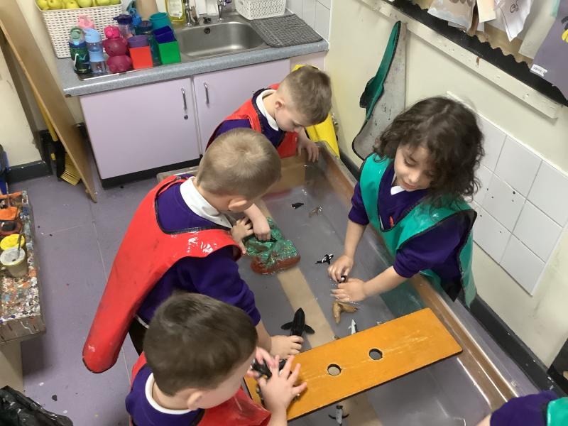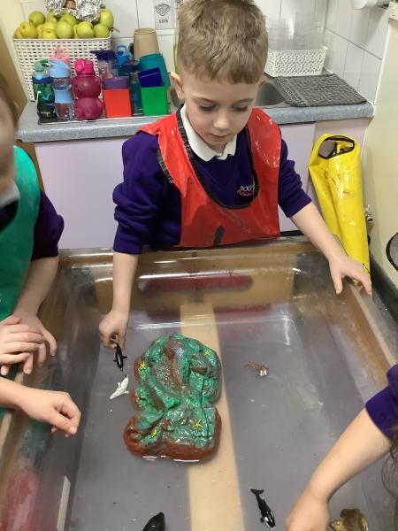 It has been a week of finding treasure this week. The children came in on Wednesday to discover that Pirate Pam has stolen Pirate Pete's treasure and frozen it! The children worked together to try and free the treaure from the ice and discussed how we needed to melt the ice to get the treasure out. They used warm water, syringes and brushes to try and melt the ice.We even tried little spades to chip away at the ice. You will be pleased to know that we got all of Pirate Pete's treasure back for him!