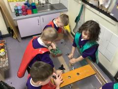 It was all systems go in nursery this week as we went on the hunt for treasure! Not just any treasure though, it had to be magnetic! The chidlren loved exploring using the magnets and learnt all about magnetic and non-magnetic materials. They hovered the magnets over the sand and waited for them to attract the treasure.