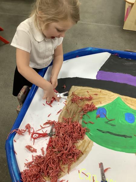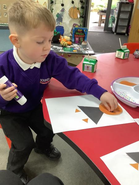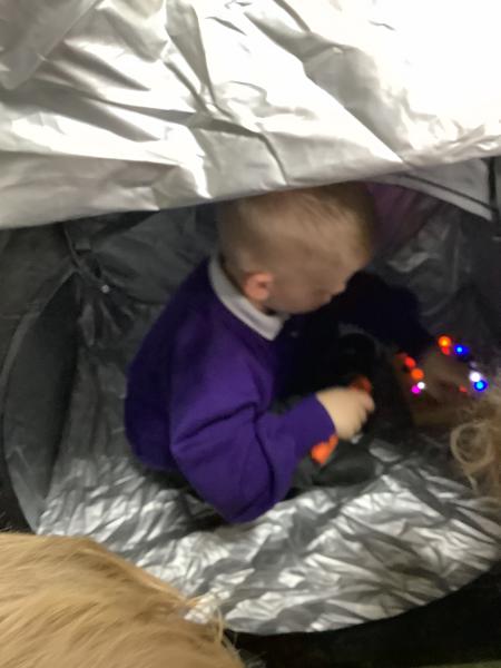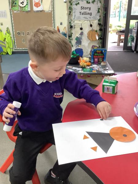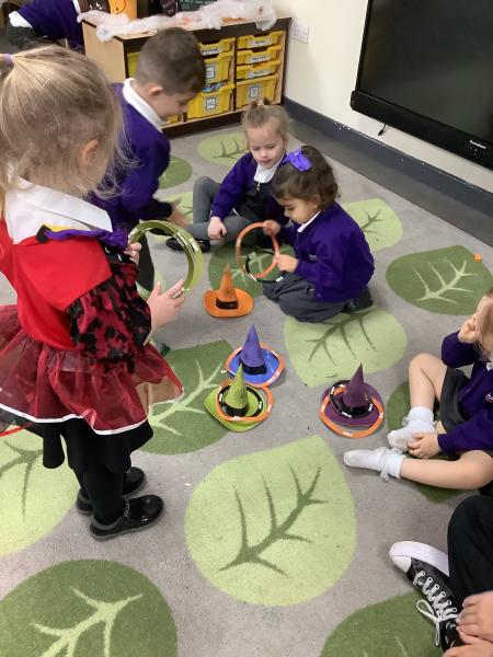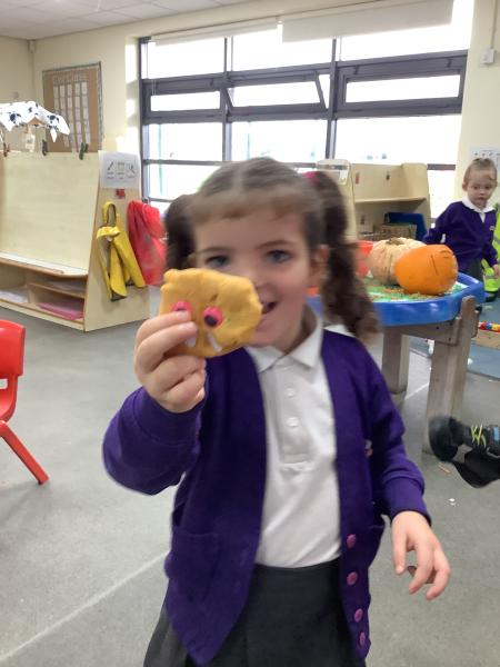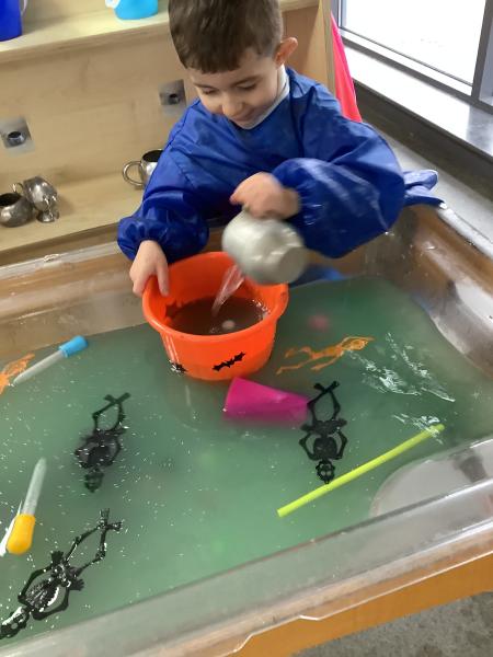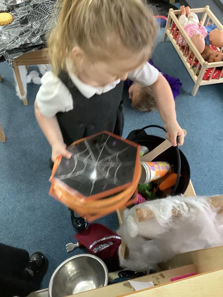 Nursery got a little bit spooky this week as we celebrated Halloween. The children have been busy making potions, creating a witch using different shapes, making pumpkins out of playdough and practising their cutting skills by giving a witch a hair cut! They have also been exploring light and shadow by using halloween torches in the black out tent and helped some spiders to find all 8 of their missing legs! Its been a very spooky week!