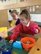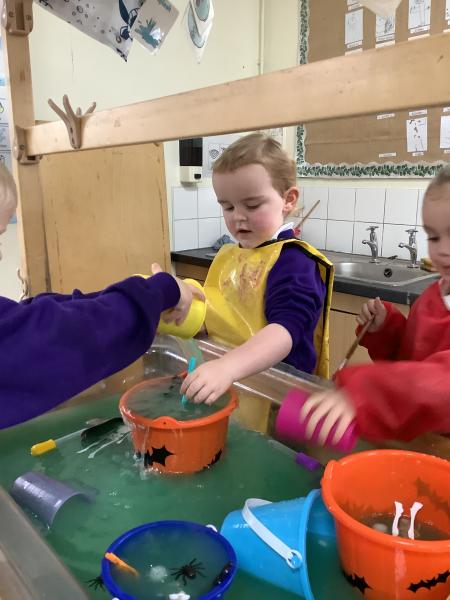 There's nothing we like more in nursery than a nice bit of water play! It's a fantastic way for the chiildren to explore capacity, develop their fine motor skills through pouring and emptying and build relationships through sharing and talkikng through ideas. If only we could find a way to stop them getting soaking wet!