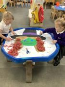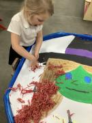 We are reading the story "We're Going on a Bear Hunt" by Michael Rosen and have had lots of fun bear activites in our provision. The children really engaged with our bear sensory tray amd created some great bear bottles by filling them with coco pops. This was great for their fine motor development as they scooped up coco pops are carefully poured them in to the different size bottles. As the childen filled the bottles we counted how many scoops and used mathmatical langauge including full, empty, bigger and smaller.